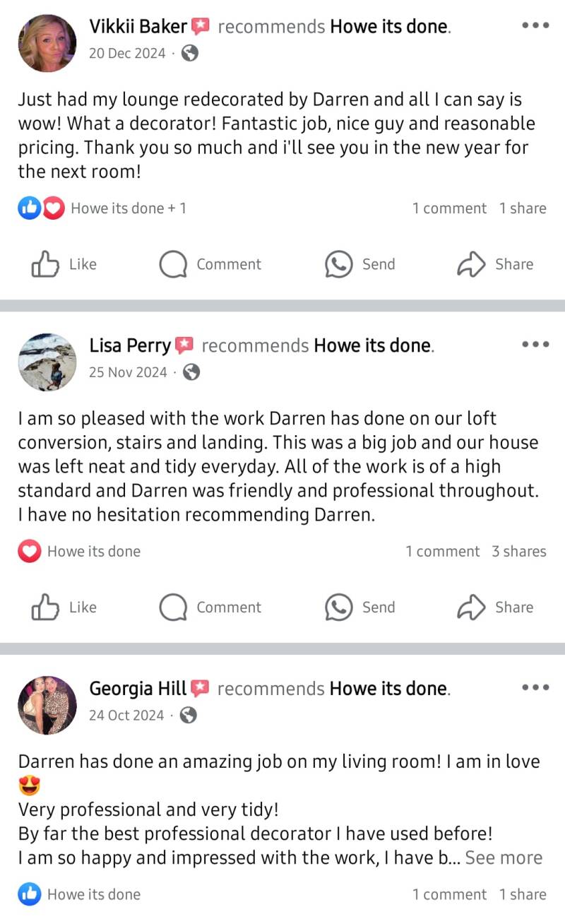 “I couldn't be happier with the service received from Howe its done. Darren transformed my living room beyond my expectations, all within my budget. Darren was professional, tidy, and exceptionally skilled.”